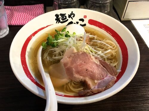 麺やでこ・・・最後の冷やし麺! <全体> 穏やかで明るい琥珀色・・・茗荷とカイワレで惜しむ夏を感じる <スープ> 鰺煮干しの甘味を含んだエキスに加え生姜汁の清涼感!更に旨味は鰹出汁!? <麺> 菅野製麺所:いつにも増してクツクツさが痛快なのだっ…