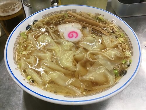 たとえどんなにツラくとも・・・中華そば みたか!は健在 中華そば みたか (東京・三鷹) ワンタンメン + チャシュー皿 + キリンラガービール 中瓶 〜ラーメン食べて詠います <酒> キリンラガービール:もはやビールはルーティン!目が合えばビールだよ…