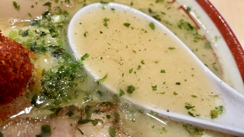 まずベースの味噌スープは自分としては意外な展開。サラサラした出汁で少しワイルドなのを予想してたんですが、結構見栄えは上品。動物系のエキス感はありありとありますが、香りも穏やかです。そしてクチに含むと味噌の風味より甘味が先に伝わる感覚?。穏やかに感じたところから、ゆっくりと味の厚みを感じます。