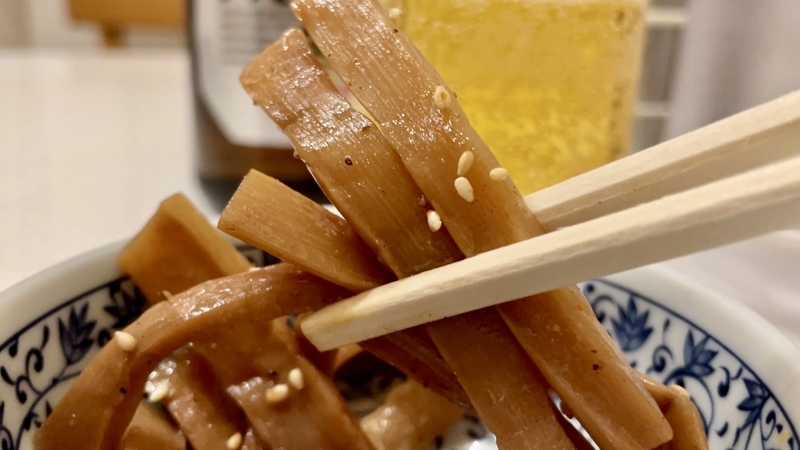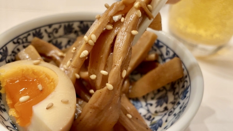 <メンマ> 軽快で柔らかい歯応えに魚介醤油が効いた味わい!春木屋らしい旨さ!