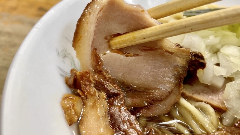 <チャーシュー> 肉に甘味すら覚える円やかさ!持ち上げると崩れんばかりの柔らか豚ばらスライス!