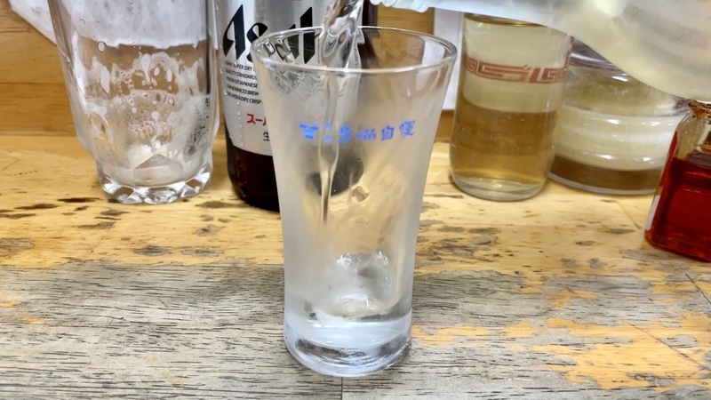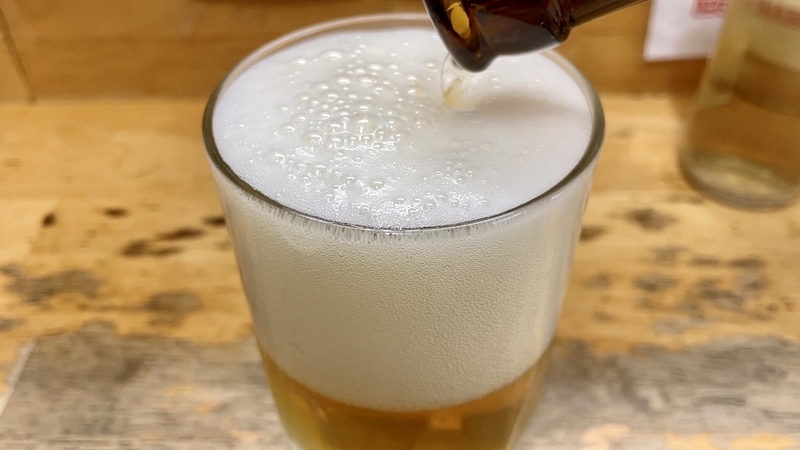 ここは生ビール・瓶ビール・日本酒・ハイボールとラインナップされとるのです!だから素敵!いやすき!。生ビールよりは瓶ビールなオレ。アサヒスーパードライを堪能させていただきましょう!。ははは・・・・瓶を握った瞬間から「冷え冷え」「キンキン」でして冷たさが手に沁みる。そしてグラスじゃなくてコップ!。これが大衆酒場感を感じさせてくれていい感じ!しかもコップも冷えてて曇ってる。冷たいコップにキン冷えビールを注ぐ瞬間がたまらん!。