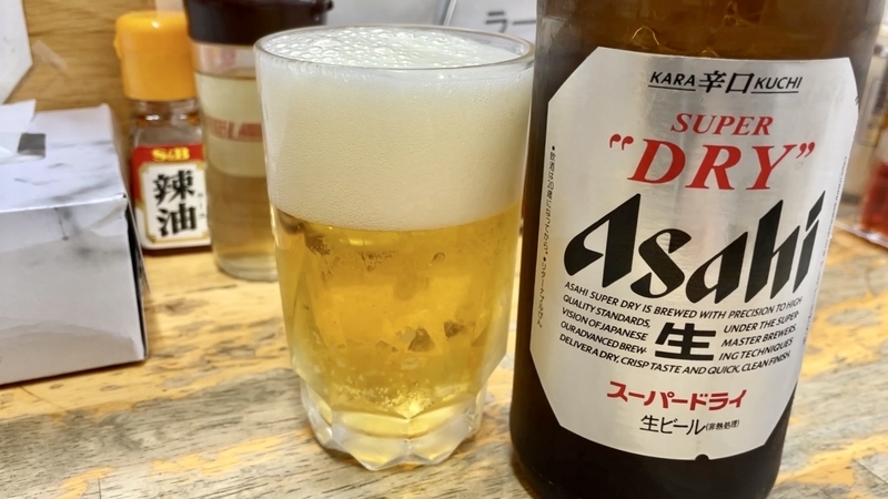 あゝ、口に含むとスーパードライらしいキーンとした辛口の響きと冷たい刺激がマッチします。喉越し刺激を与えながらも、比較的ライトな味わいと鋭いキレ味で、心のストレスを一気に流してくれるようです。