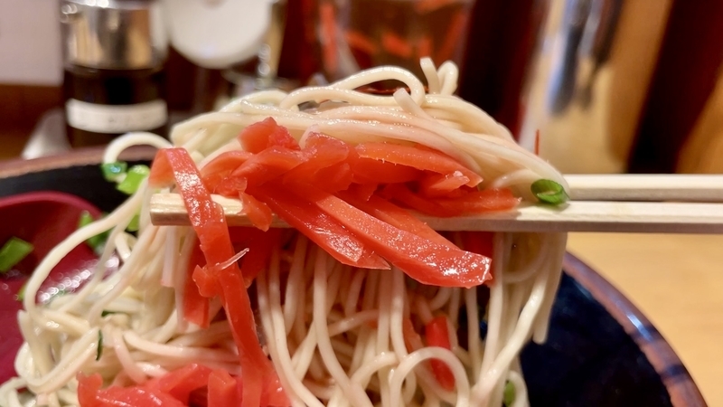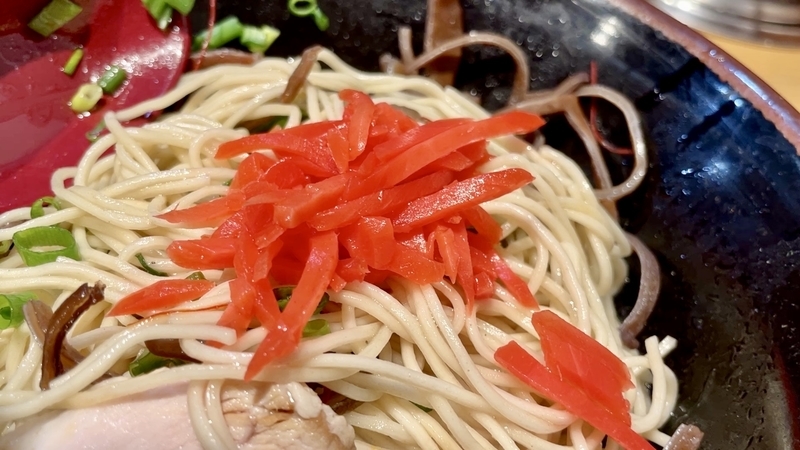 <薬味> ジリリと感じる紅生姜!麺と絡めまくって刺激と歯応えを楽しむ!