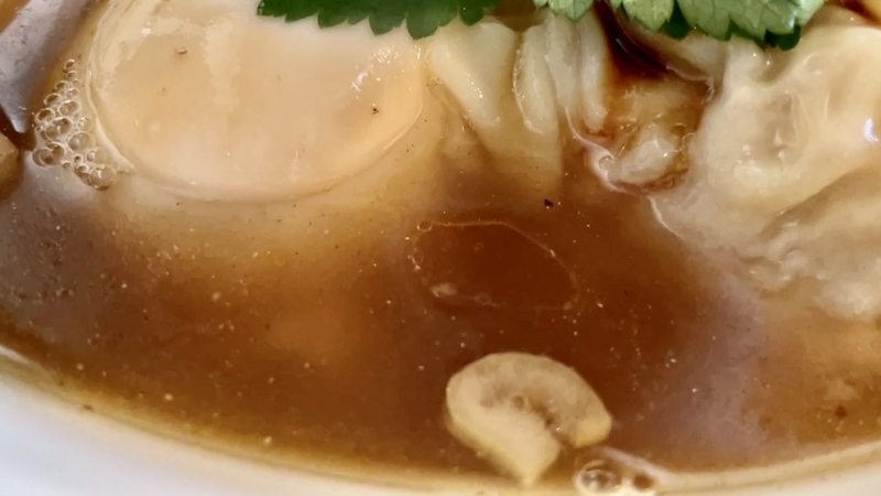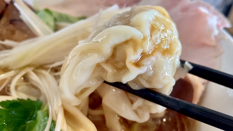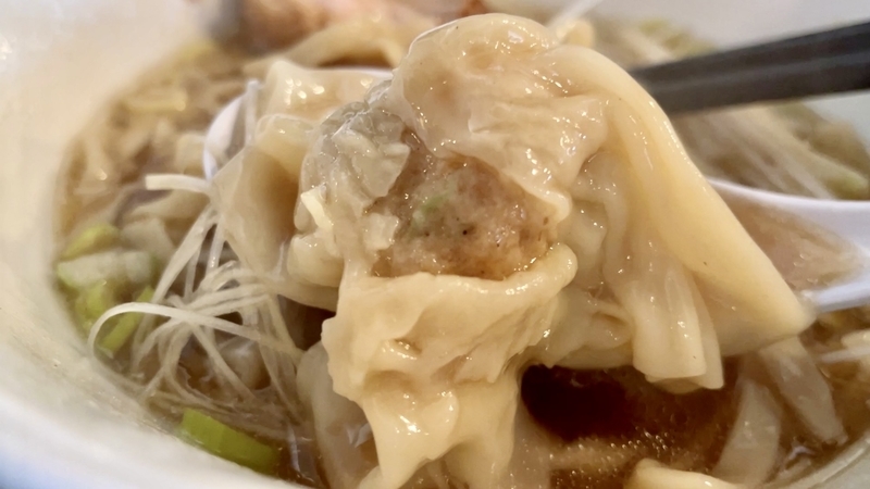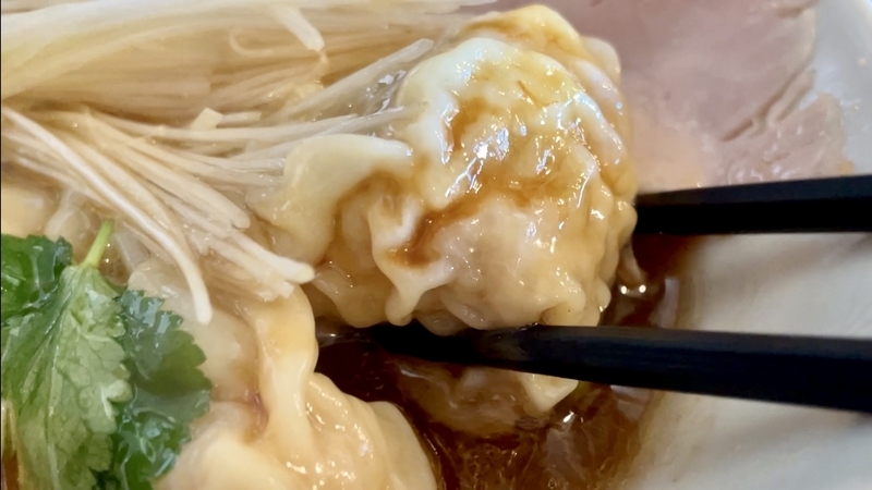 <ワンタン>肉餡ふわふわ皮つるつるで食感が実に軽やか! 豚挽肉&海老すり身?のダブルの旨さ!