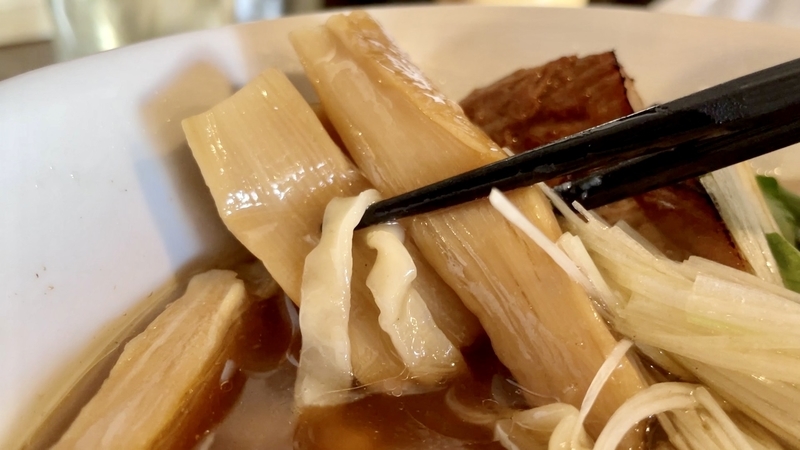 とまぁ、ここまで隙を感じさせない作り込みですが、メンマもやっぱりそんな感じ。立派な材木メンマで、優しい出汁がしっかりと浸透した味わいです。繊維質が細かくて柔らかい。前歯を当てて力を入れると、どの方向からでもサクリと気持ちよく千切れます。さらにスープが浸透するようでこれまた旨い!。