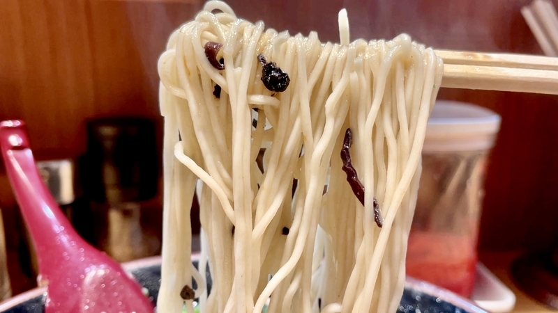 そして今回は「黒」バージョンとありますが、あまりデフォルトと比べてインパクトに差はない様子。焦がし葱がちらばらる葱油が香味として漂う展開です。
