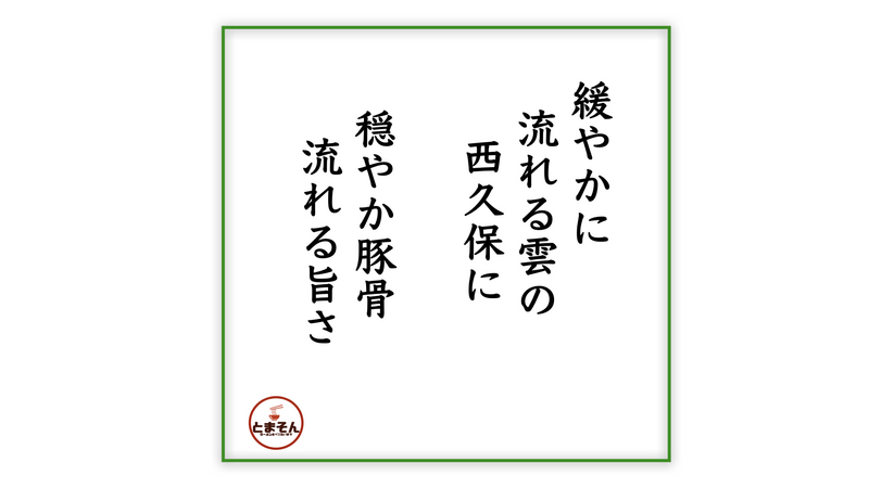 ・・・と言う感動の嵐!。近場でサクッと並ばず食える上質豚骨麺ですが、ちょっと人に教えたくなる旨さです。つまみセットでゆっくりビールと合わせさせていただくのもいい感じ!。三鷹・武蔵野エリアで拉麺ならこちらも激しくオススメ!旨し!なので・・・とっとと最後に詠って、いつものように締めたいと思います!。