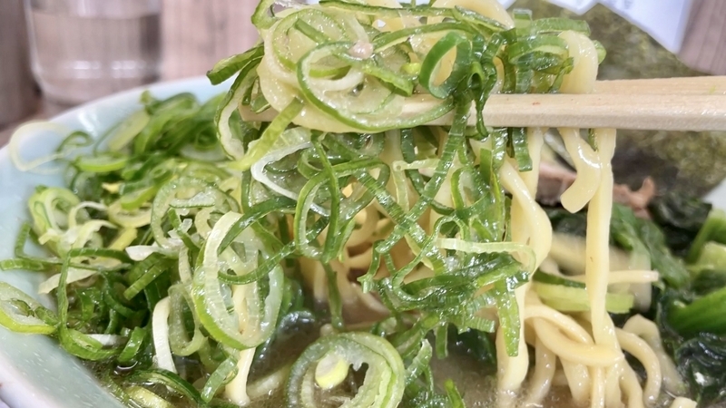 スープを啜り始めるとやっぱり家系の満足感です。微妙に泡立っているのは、コッテリ感と同時にコラーゲンの豊かさ。豚骨のあら炊き感覚が伝わるようです。そして余裕?に感じる醤油だれのアミノ酸と塩気今回は、濃さも「ノーマル」としたため、塩気も味の濃さも非常にナチュラルに感じられました。