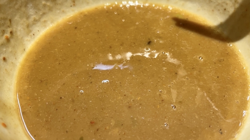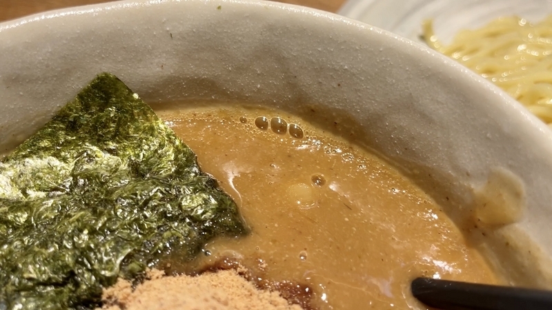 <つけダレ> 貼り付くようなポタポタ鶏白湯!香ばしさと甘味を溶かす魚介!纏まりを感じるカエシ!
