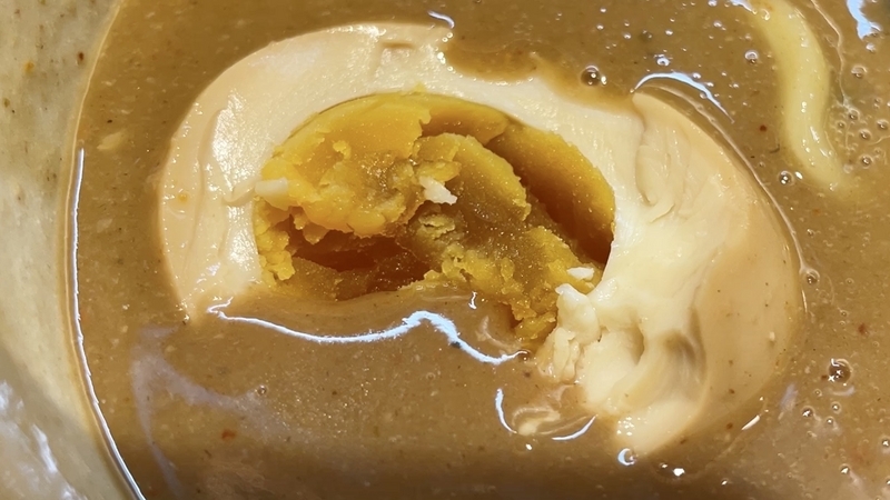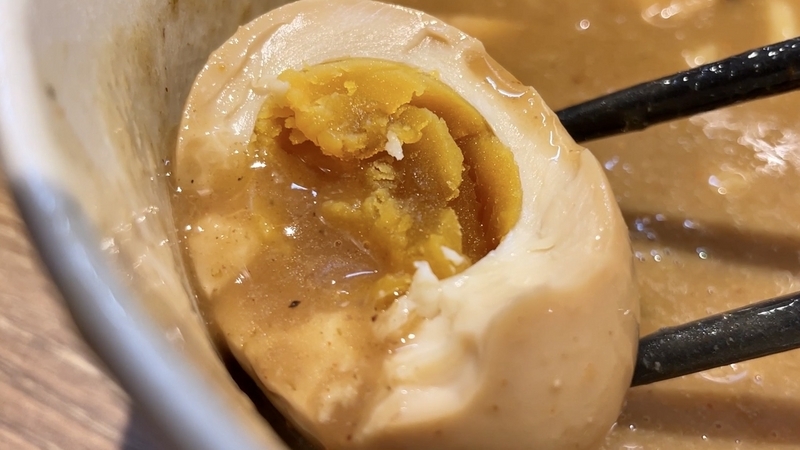 <味玉> 下味がしっかり浸透しハードジュレ状の濃密卵黄!白身も仄かに味わい深し!