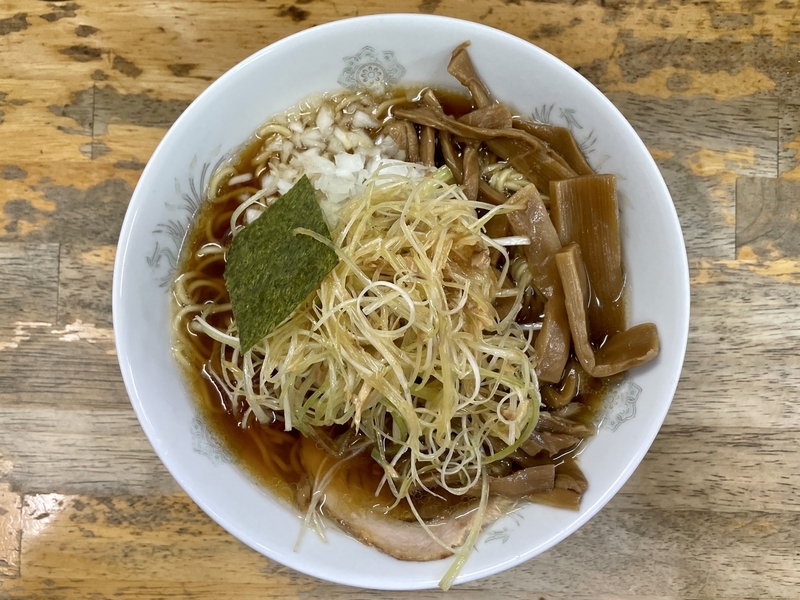 色合い的には一見地味に感じるのだが、とてもよくまとまった贅沢感です。そしてオヤジ心をくすぐるノスタルジーな面持ちがナイス。関東流儀と感じる深めな醤油浸透の短冊メンマが嬉しくなるほど大量!。