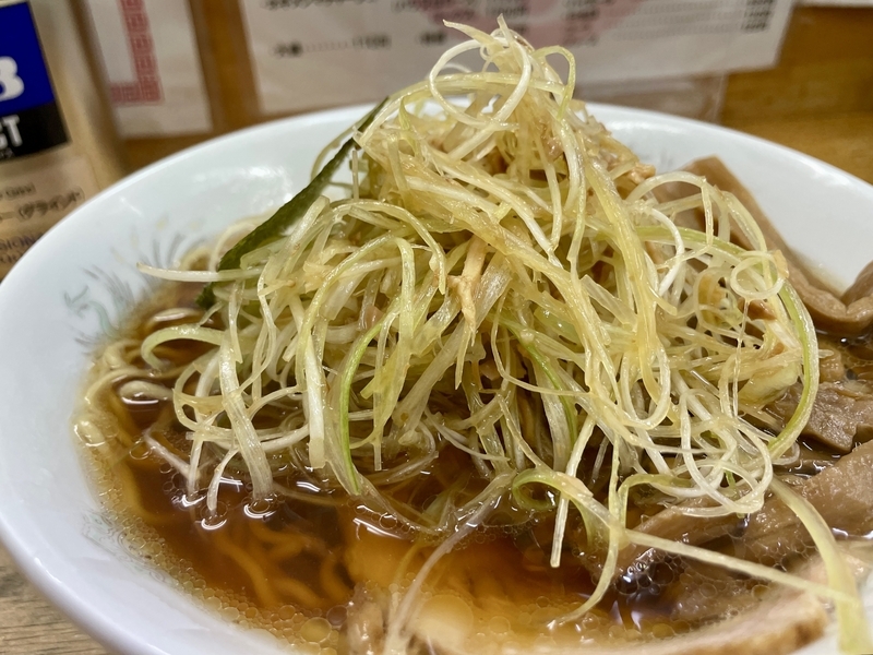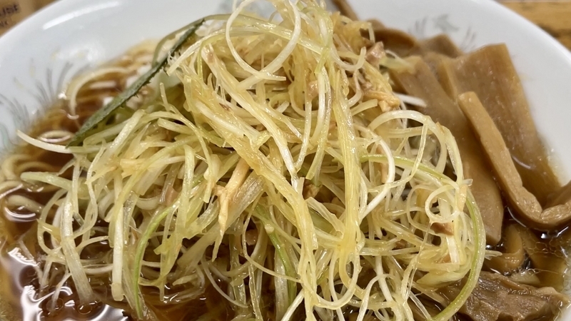 へへへ・・・葱好きネギ星人を興奮させる味葱がこんもり!。出汁や麺にも深く全体に溶けこむような葱山がナイスです。写真だと実物より小ぢんまり映ってしまうが、実物は質感高いです。