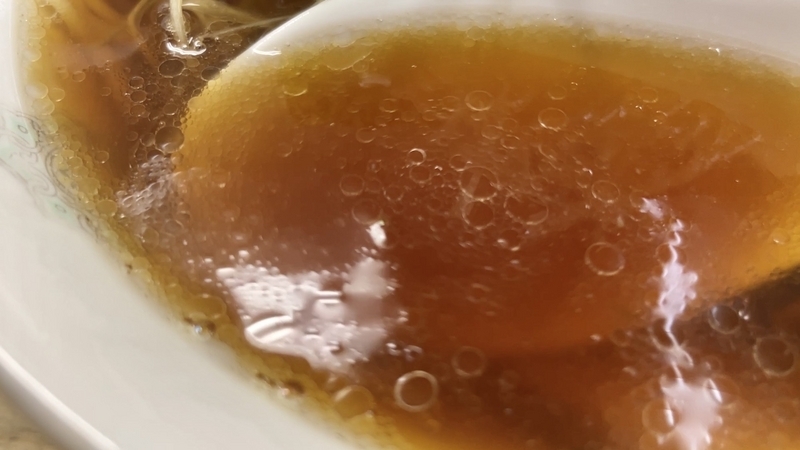 <スープ> 古風な節系の魚介溶込み!さっぱり系豚肉煮出し感覚の旨味!カエシ穏やか!安らぎの味わい!