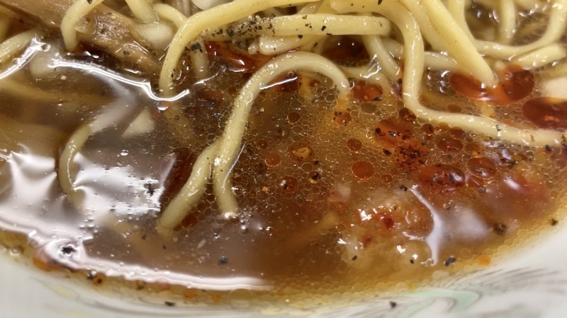 何度もこの場で紹介をしておりますが、こちらは麺を選べます。「玉子麺」と「国産そば粉入り」のどちらかです。私は後者が多いのですが、そう言うポイントも八王子系らしくないところ。風貌は見ての通りの褐色系ですが、三鷹の「中華そば みたか」ほど蕎麦ライクに突き抜けている訳でもありませんね。