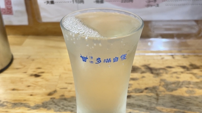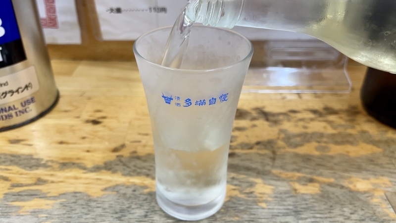 冷やで!でとコールしたが、ここは常温で出てくるものと思ってたら、しっかりと冷えた酒だった。しかも生貯蔵酒ドライ!。最近になって「澤乃井」が食い込んでると思いきや、冷酒は「多満自慢」でしたー。夏を感じ始めるとやっぱり冷酒!。日常酒の風合い低く、淡麗なる切れ味もしっかり表現。メンマとよく合うじゃないか。
