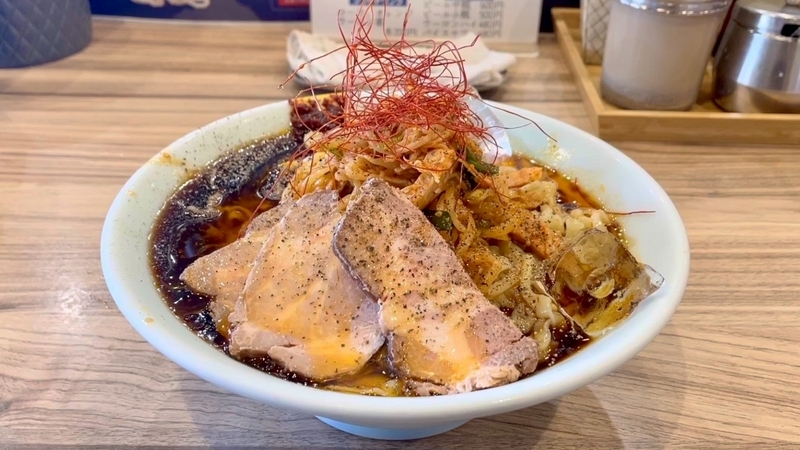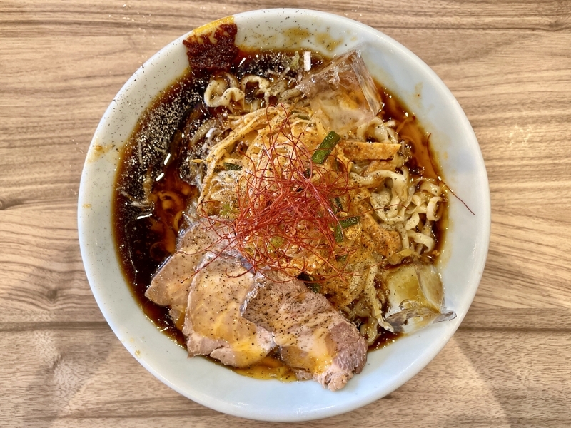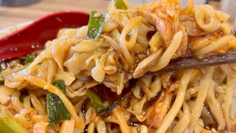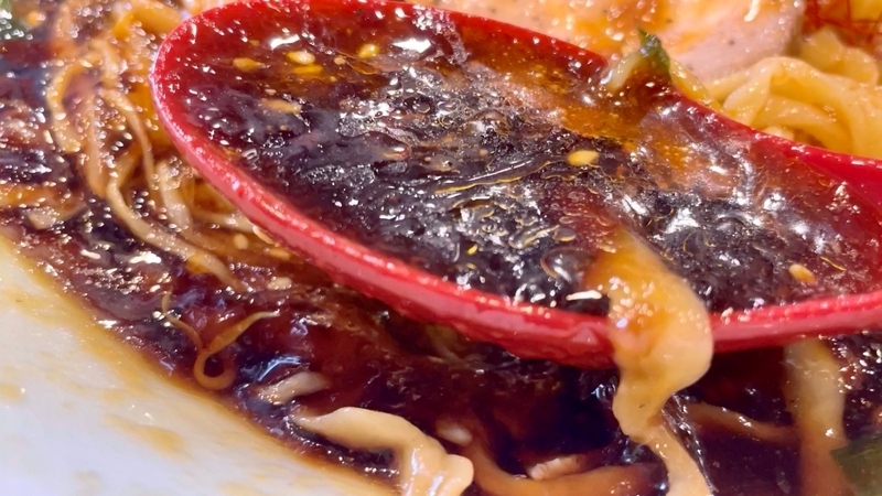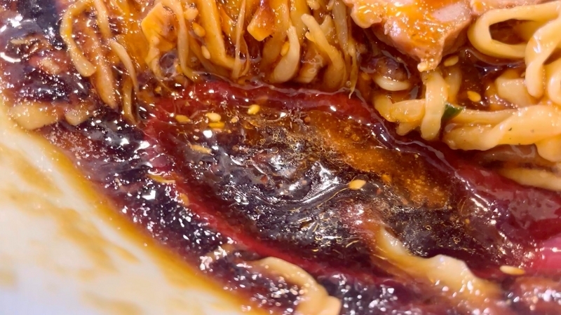 やっぱり「とろみ」が一番の特徴!。キンキンに冷やされた醤油餡のようで、それがまた麺や具材にちょうどいい塩梅で絡みつく感覚です。葛か片栗と勝手に妄想しております。その味わいは、冷えても旨味感が凛々しい。醤油の風合いやベースにある豚コクが潜んでいるとは言え、やはり辛味として溶けた辣油がシャープなのと、大蒜やニラなどのジリっとした風合いが冷えてても伝わるイメージ!。