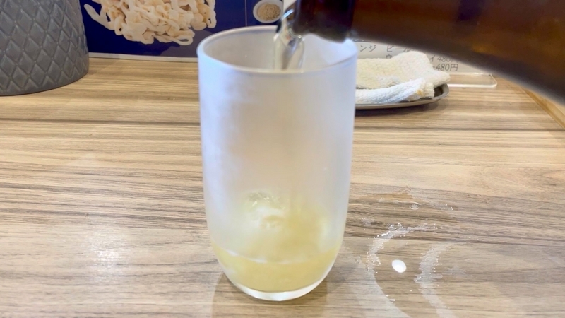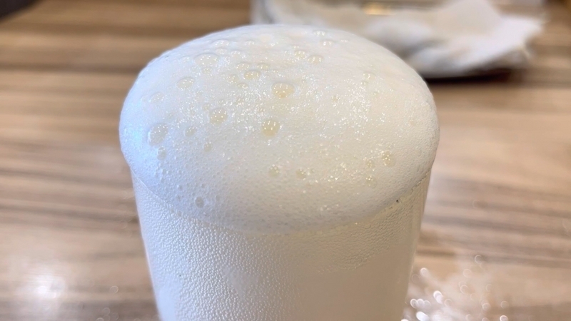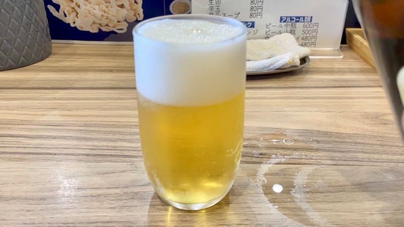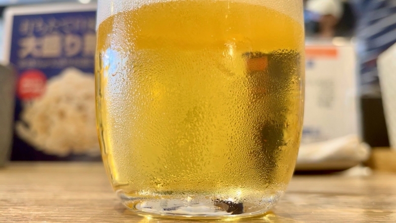 人気の限定メニュー展開とあってピーク時をずらしても店内混んどる。カウンターには少し待てば座れたものの、出てくるまで時間がかかりそうなので、予定調和でサッポロ赤星も購入。味わいながら待つのも楽しからず哉。赤星は、個性的な味わいにも合うね。苦味がしっかりしているから、逆にさっぱりとさせてくれそうな印象です。その後の飲み口は軽やかなのもナイスで、どんどんグラスと空けてしまいそう。