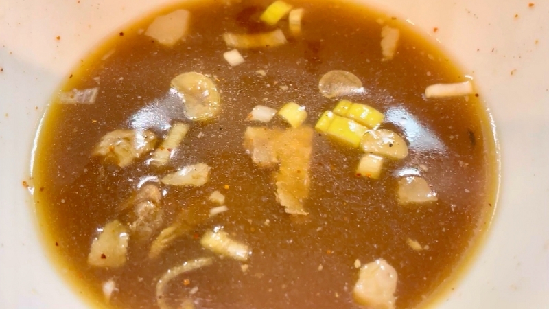 <つけダレ> 豚の柔らかい煮出しに魚介節系の香ばしい甘味!仄かに一味が効いた円やかさ!
