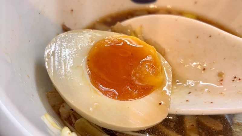 <味玉> 淡い魚介醤油出汁の深い浸透!白身はほんのり甘く卵黄はねっとり濃密旨味!