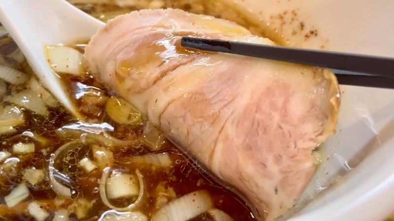 <チャーシュー> タレに沈む材木カット!麺に寄りかかる大判スライス!旨さ安寧の豚肩ロース!