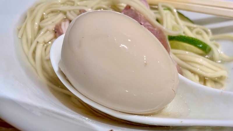 <味玉> 白出汁深く浸透!ふるふると柔らかく揺れる白身!しっとりした甘味の卵黄!