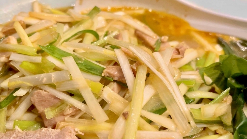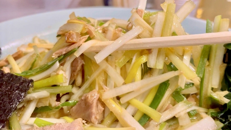 ここの特徴はやはり味葱。その短尺さが印象的です。そのザクザクと歯ごたえがしっかりとして楽しめ、葱の甘みに豚骨出汁が滲むのが旨しです。
