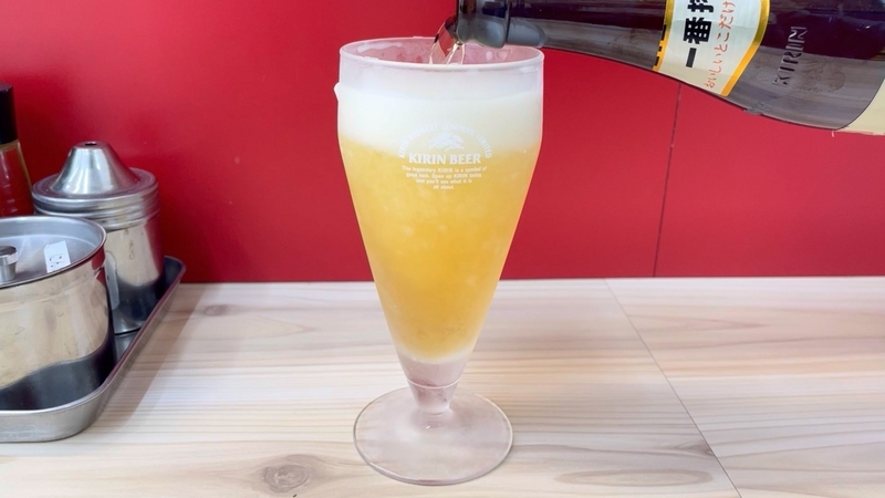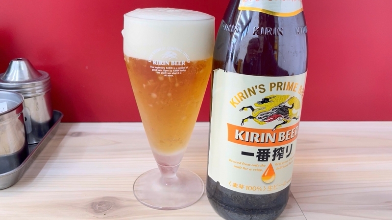 やっぱり一番搾りも侮れない旨さですな。特にグラスのみならずボトルもキンキンに冷やされており、ひと口目の喉越しが身震いするほど痛快でございます。ずしりとした苦味に一番搾り独特の華やかさが広がる上に、キーーーーーンと感じるほどの涼感が素晴らしいじゃないか!。つまみが無くともゴクゴクと意識を集中して味わい楽しみます。