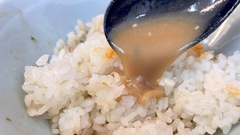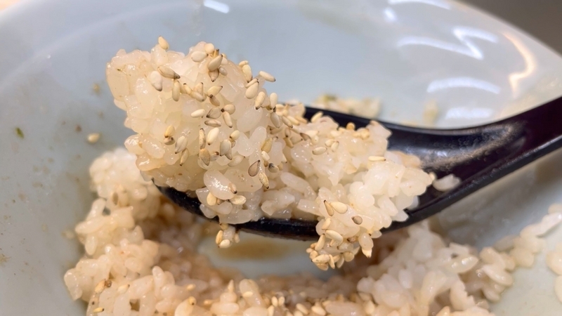 またこれも徹底的に麺に巻きながら食います。それだけでなく無料ライスに少し移動させて飯粒ととも楽しむ算段。やはり肉が少し多いだけで楽しさ増えますー。