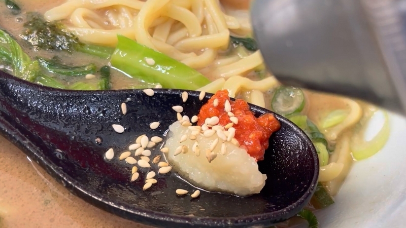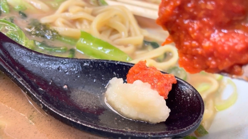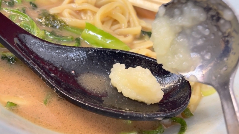 まぁ・・・これは必須ですね。仕事合間に食らうのが憚れますが、ここは生姜はなく、ニンニクをもし代用するとしたらブラックペッパーとなりましょうか?。今回はラーメンだけでなくライスにも少し乗せてみましょう。だって休日!臭くなってもええんですから!。