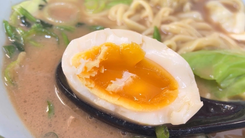 また卵黄はジュレ状にトロトロとなっており、これまたそそる質感です。濃厚な豚骨醤油の出汁に負けない濃密な卵黄のコクが口の中に広がる楽しさでしょう。