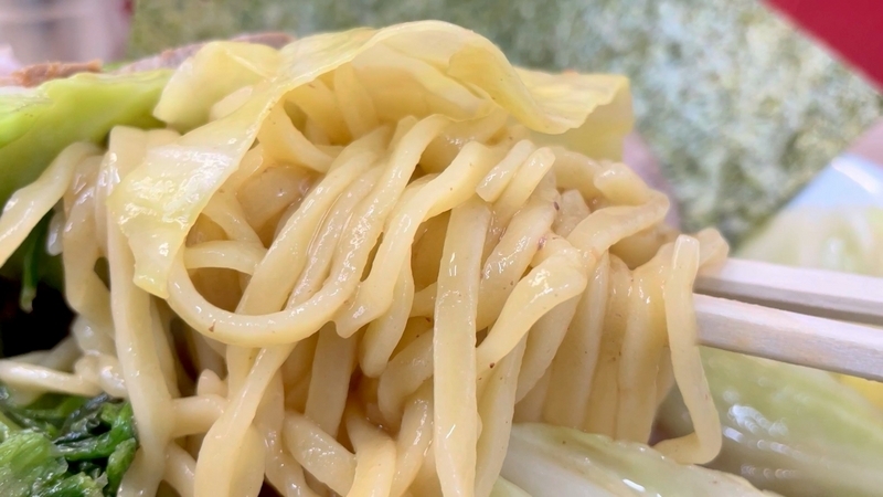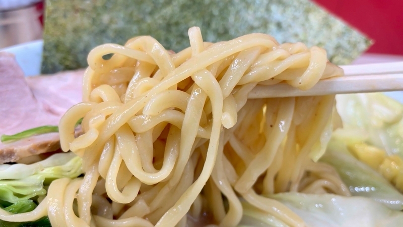 ううう・・・味わうと実に重厚。重厚豚骨の野趣感!鶏油アシストで分厚くガッツリ響く満足感です。コラーゲン感を感じるものの、口の周りに貼り付くほどでもなく、まったりとした濃度感かと。塩気と鶏油がアシスト的で豚骨がメインってはっきりした味わいがいい感じです。どこの家系でもそうやんけ!と言われると身も蓋もないがー。