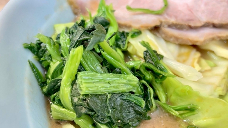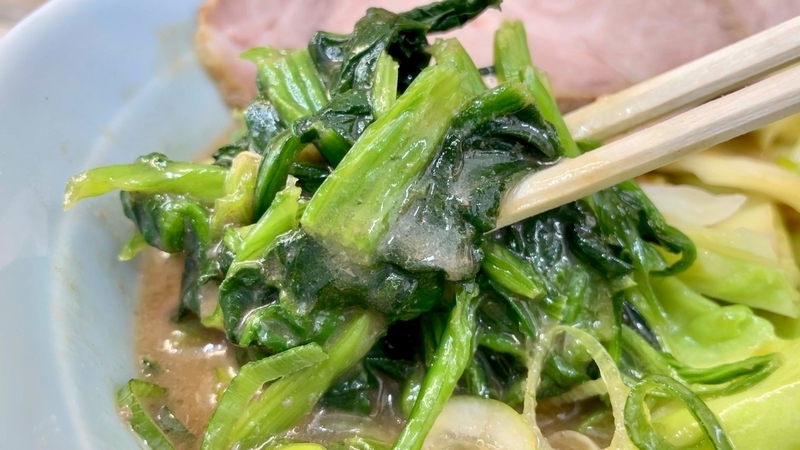 <ほうれん草> 微妙に峠を越えた仕上がりがまさに家系感覚!出汁に濡れて青菜の甘み高まる!