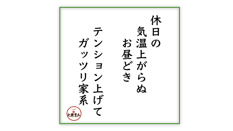 ・・・と言う感動の嵐!。なぜか開店以来10年もスルーしておりましたが実に機会損失と感じ入ります。味はもちろんサービス良し!清潔感あり!勢いよし!。拉麺活動のローテーションの一角に勝手に入れさせてもらいます。国分寺も拉麺激戦区だけど家系だったら激しくオススメ!旨し!なので・・・とっとと最後に詠って、いつものように締めたいと思います!。