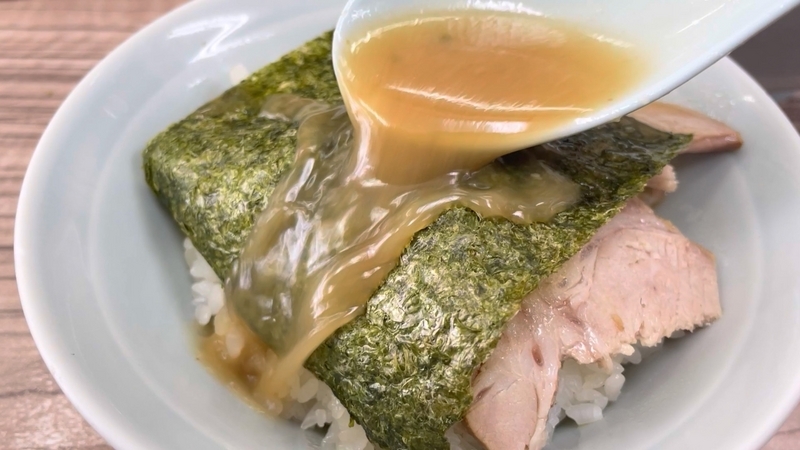 <白飯> 板海苔とチャーシューを移し残った出汁を一気に垂らす!これぞ家系の最高の〆飯!