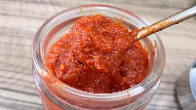 アシストとしてニンニクの刺激を投入。生姜が味の中盤を押し上げる展開で、ニンニクをFWとして投入しただけでは攻撃の分厚さが欠けるので、そこで豆板醤を機能させます。