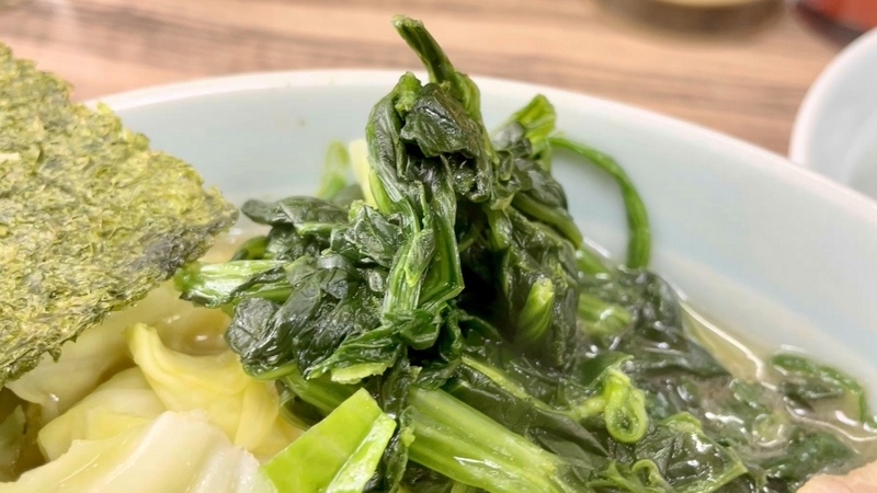 ほぼ繊維質が溶けるような展開もいい。しかし、くたり気味かもしれんが、青菜の風合いを、フレッシュに展開するけど、味が濃ゆい出汁とは非常にマッチする!。家系でほうれん草に意識を集中して食らったことはないかも。