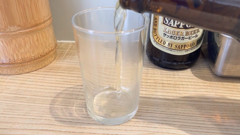 ここは小瓶といえば「サッポロ黒生」。このブランドは、個人的には苦味と爽快感のバランスがよく、他のキリン・アサヒよりちょっぴり上品さを感じてる私です。バランス良いと感じているので、比較的料理と合うと勝手に思い込んで・・・何十年も飲み続けております。赤星にはない、ちょいとライトに飲める味わいも素敵。飲み過ぎて腹パンにならない小瓶サイズの334mlってのが丁度いいね。