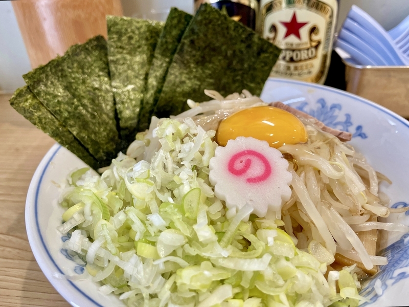 <全体> 想像以上に素朴な迫力!懐かしさ感じるモヤシ!凛々しい板海苔!多めな薬味葱!妖艶な生玉子!