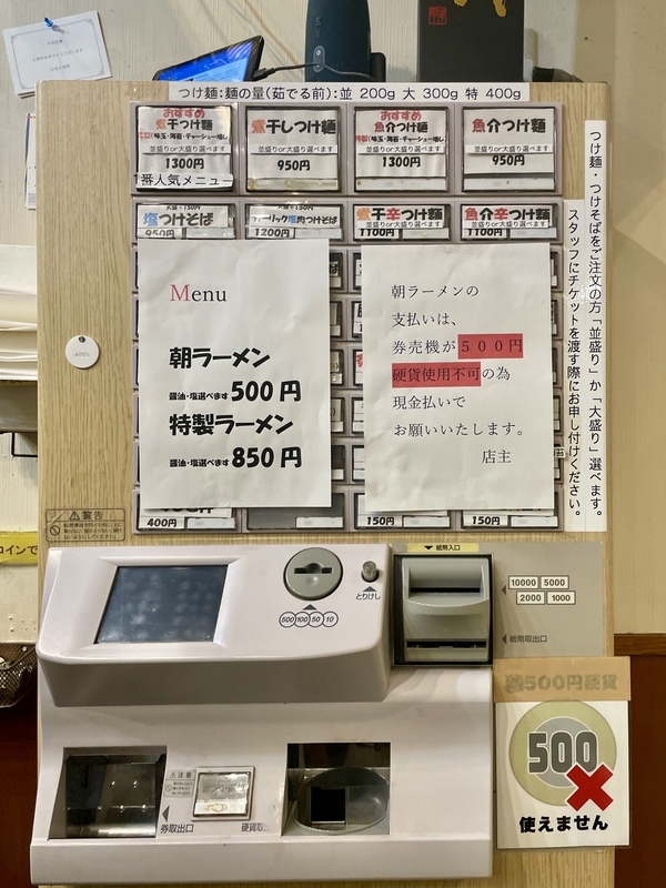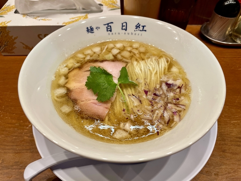 そんな中でモチベーションを上げようと乗り換え駅の新宿界隈で朝ラーメンと思って、ネットで検索。もうどれも知った/行った店ばかりだが、朝とは似つかぬ店名を見つけてしまう。それが「麺や 百日紅」さん。何と・・・いつのまにか平日が朝ラーメンを提供しているのだった。しかもワンコイン500円とな!。新宿三丁目という都心で何と言うサービス精神であろう。もう情報見つけた日の翌日朝には突撃しておりました。