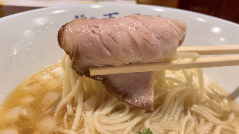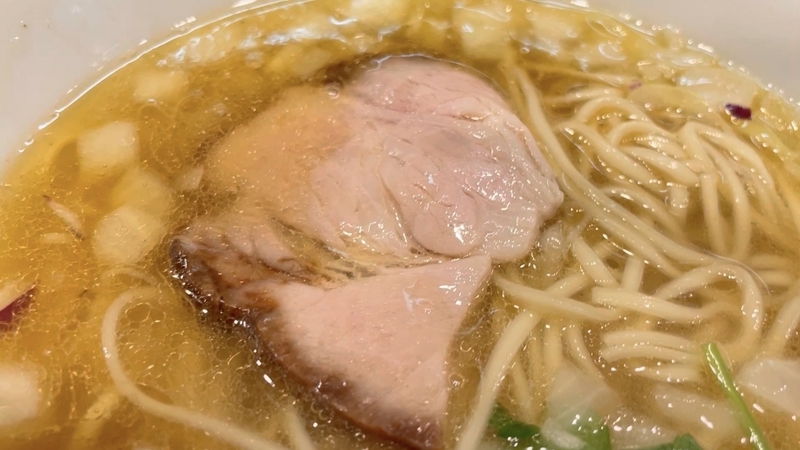 醤油と塩を選べるのだが、塩の方が存在感あるみたい。出汁の溶け具合がしかりと感じ取れる重厚感。それでいて丁寧さを感じる清湯。薬味も2種でふんだんでケチっていない。そんじょそこらのデフォルト塩そばなら千円弱でも通用するのではとすら感じてしまう。