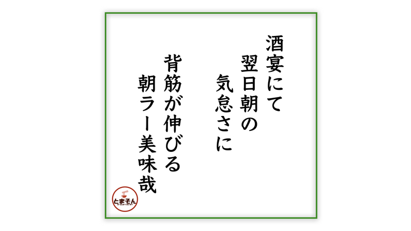 ・・・と言う感動の嵐!。駅の立ち食い蕎麦屋で、ちょっとトッピングを追加したらそこそこの値段。それもまた味わい深いのですが、500円ワンコインでこの質感と完成度ってことが素晴らしいです。通勤ラッシュに優雅な極上朝ラーってのは、どこか気分がエグゼクティブ!?。この一杯のコスパの高さは拉麺ファンなら体現すべきかと!。激しくオススメ!旨し!なので・・・とっとと詠って、いつものように締めたいと思います!。