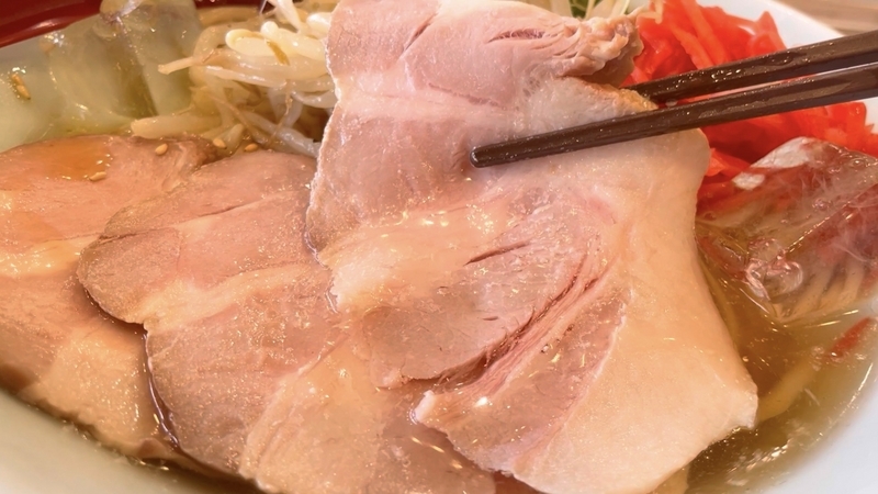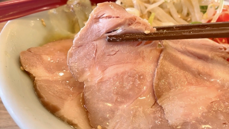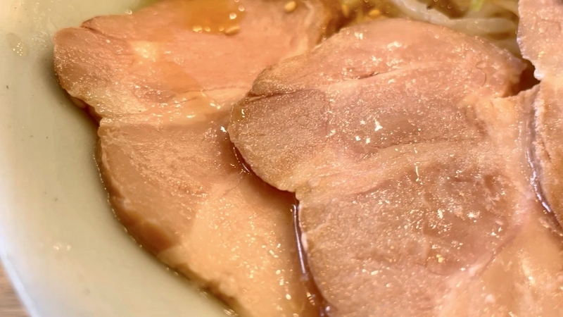 <チャーシュー> 仄かに香ばしくも出汁を吸い込む赤身!舌の熱で甘味を溶かし口の中で旨さ広がる脂身!