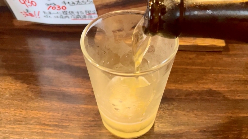 入店するとエアコンが不調らしく、なるべく奥の席を勧められる。隣席では地元オヤジがビールとつまみでまったり過ごしてる。日が明るいうちから素敵なアウトローな過ごし方です。毎日が日曜日的な生活を、オレも激しく願う!。そんな思いで「赤星!」とコール!。