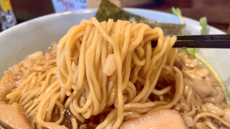 また動物系の清湯ベースのようで魚介の甘味も溶けるバランス!。表現力豊かと感じます。香味にラードが溶けているようにも感じますが、今回は「セアブラ」増しなのですから、動物系のこく深さもしっかりしてます。甘味には煮干系のエキス?魚介の輪郭を微かに感じますがそれが香ばしさとコク深さを表しているようです。