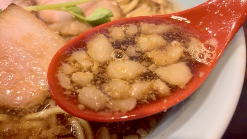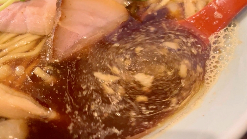 <出汁> 質実円やかな出汁感に煮干しと背脂の溶け込み?半濁と透明感のハイブリッド出汁演出!