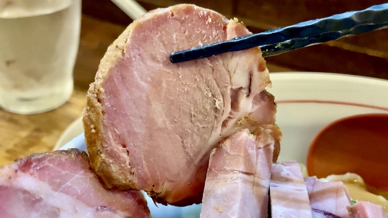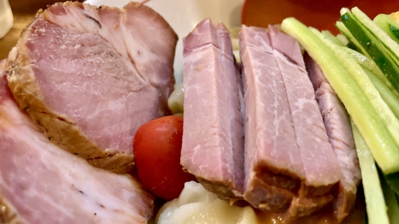 <具材1> チャーシュー!冷えたタレに絡むと重厚肉味が更に増す!旨みと香ばしさ深い豚肩ロース!