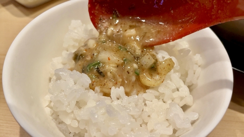 またザラザラするところもなく、動物系の出汁感に混じって滑らかな仕上がりかと。