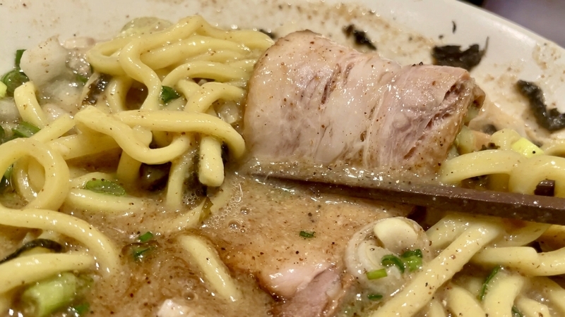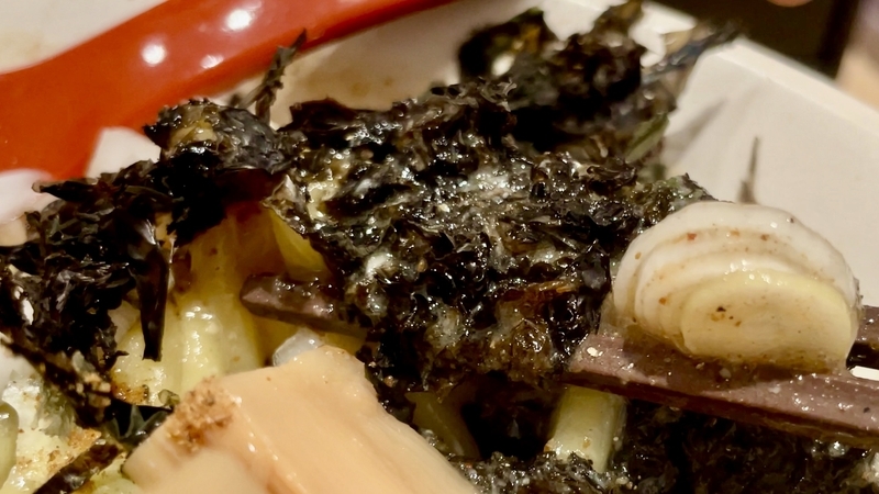ベースは味噌らしい。でもこのブランドはしっかりと分厚い味噌感覚だから、煮干し感覚は埋もれてしまうかも?と予測してたのですが、煮干vs味噌のがっぷり四つの展開。いやかなり煮干しに軍配があがるかと。濃厚煮干しらしい苦味がしっかり染みこんでいる反面、エグミなく味噌のコク深さが一体化しているようで実にうまいじゃないか。