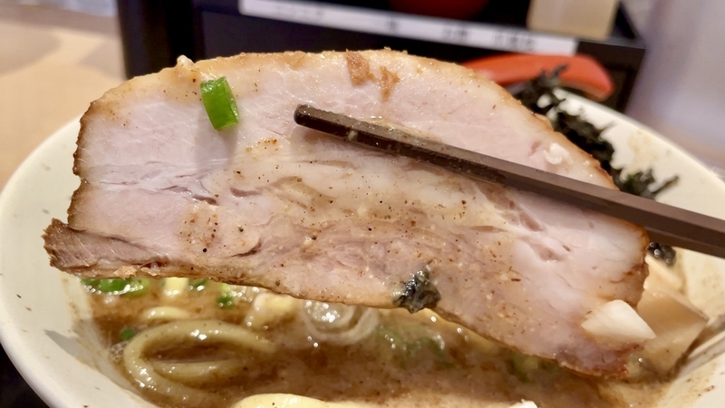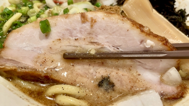 <チャーシュー> 煮干味噌に絡んでトロトロ!スポンジのように柔らかく出汁を吸い込む豚バラ肉!